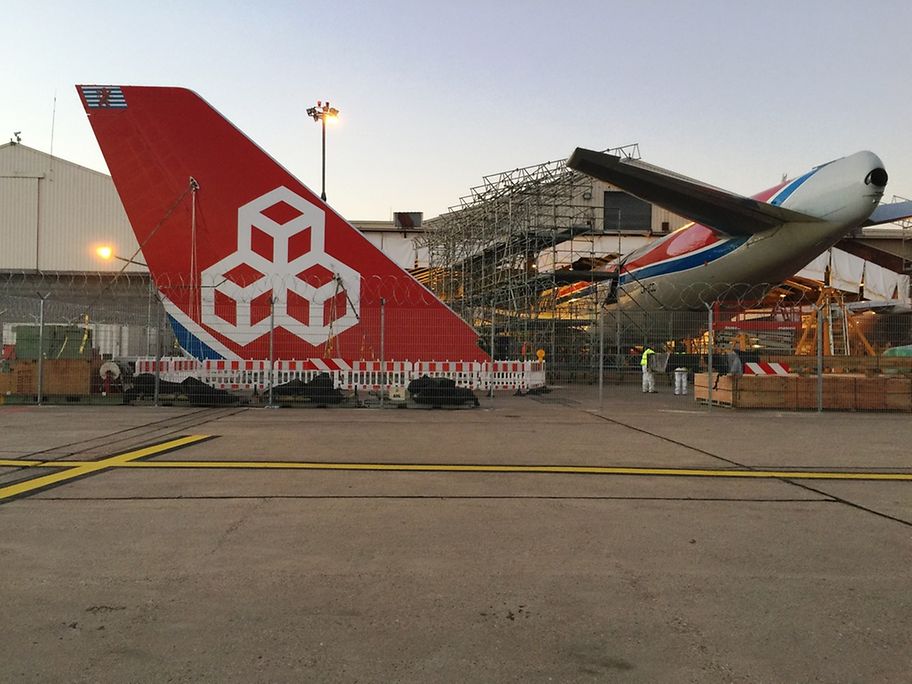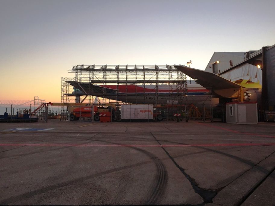 - A large temporally structure was built in front of the hangar, because the aircraft tail would not fit in the hangar..