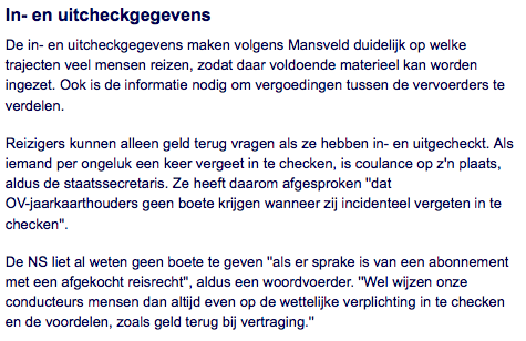 "de in- en uitcheckgegevens maken volgens Mansveld duidelijk op welke trajecten veel mensen reizen"