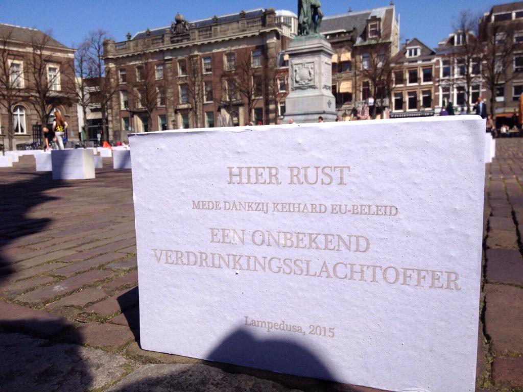 Op het Plein in Den Haag heeft Amnesty International honderden grafstenen neergezet. De mensenrechtenorganisatie wil daarmee aandacht vragen voor de bootvluchtelingen op de Middellandse Zee. De grafstenen symboliseren de honderden mensen die dit jaar bij hun oversteek van Noord-Afrika naar Europa zijn verdronken.