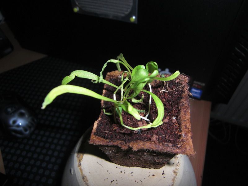 Is al op. De kat heeft de twee plantjes opgevroten. Ook trekt hij elke nacht alle broccoli uit de bak, die ik er dan 's morgens weer inprop (gat met vinger maken, plantje laten zakken).quote: