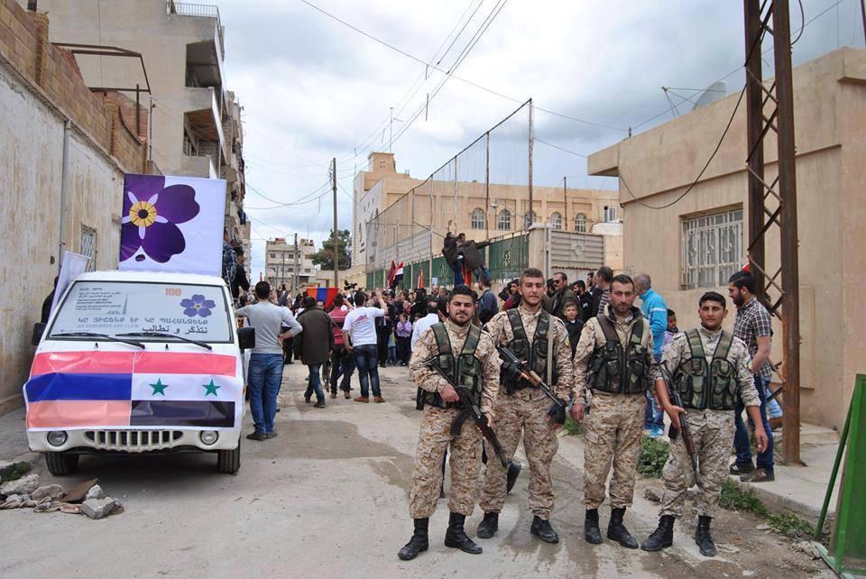 [Soldiers: "It's written on our weapons....We sacrafice our souls for Assad."]