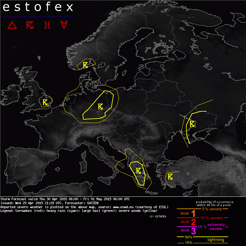 Vandaag niet. Wel komende nacht. Dan zijn er al buien in het zuiden. Estofex gaat tot 6 uur in de ochtend.quote:Op maandag 4 mei 2015 08:00 schreef marcel-o het volgende: