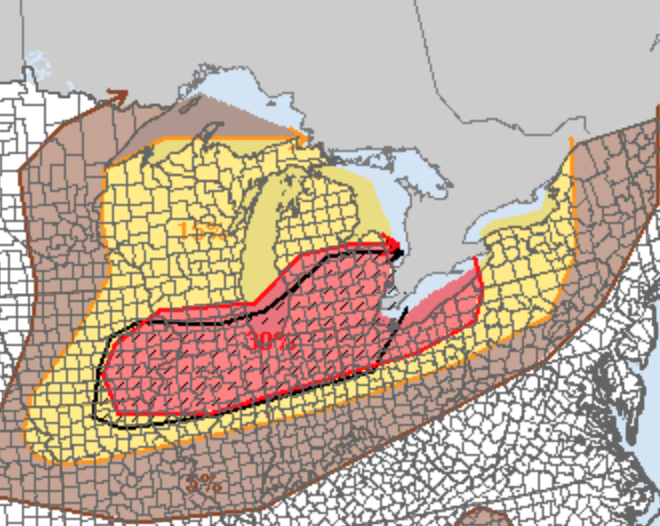 De moderate risk die eerder stond voor vandaag, is afgezwakt naar een enhanced risk.