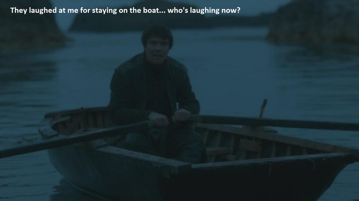 Wat een aflevering ineens zeg. Vond hem al beter dan vorige afleveringen, totdat Samwell weer eens met z'n saaie scenes voorbij kwam. En toen dat laatste halfuur, hohoho.