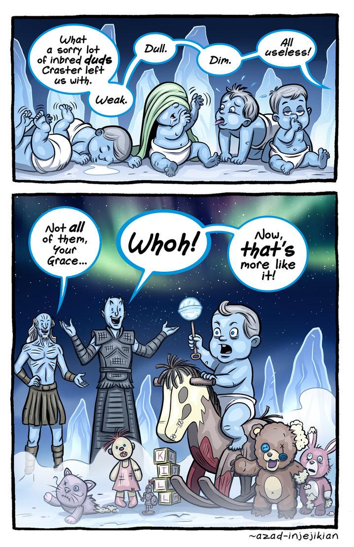 We weten vrijwel niets van de White Walkers, wellicht zijn ze helemaal niet evil maar zien zij juist de mensheid als evil. Dat vind ik meer des GoT's, niemand is helemaal goed of kwaad.