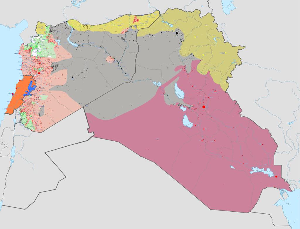 De grenzen, wanneer ISIS is verslagen, gaan de Koerden de gebieden echt niet afdragen aan Assad of welk ander groep dan ook die wilt binnenkomen, Turkije gaat niet stil zitten met een Koerdisch machtsblok -wat zij terroristisch acht- aan haar grenzen, Assad gaat z'n claim op heel Syrie niet verminderen, ik zie de grenzen die 100 jaar geleden getrokken zijn wel weer herbesproken worden.