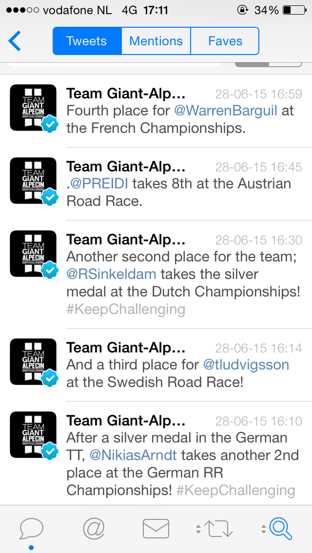 #samenwinnen #samenvallentwitter:W1lcokelderman twitterde op donderdag 02-07-2015 om 12:07:32Wat een rotdag, vandaag gevallen met de training. Lekker begin van de tour😖 #not #kampioenvallen #tdf reageer retweet