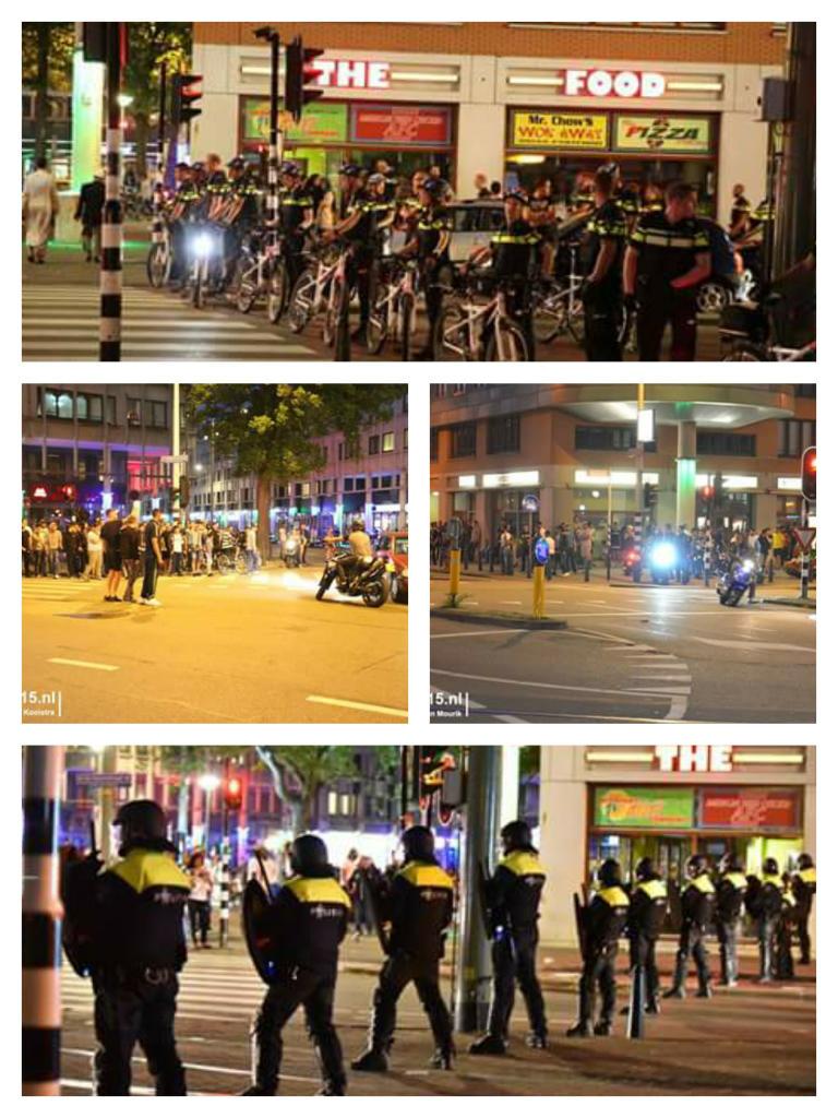 Ik quote iemand die vanaf Hoefkade uit z'n raam aan het toekijken is. Geen ADO-kleuren. Wel typische hooligans. En net alsof die inbreeds van ADO niet bij elke rel als strontvliegen op dunne diarree opduiken.....quote:Op woensdag 1 juli 2015 23:50 schreef haags_kwartiertje het volgende: