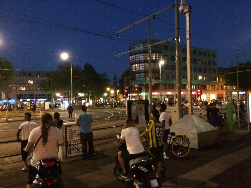 twitter:regio15 twitterde op woensdag 01-07-2015 om 23:39:31Leden van de Mobiele Eenheid rijden nu rond in de bekende Jeeps. De groepen mensen worden uiteengedreven. http://t.co/jOvfAiKsU7 reageer retweet