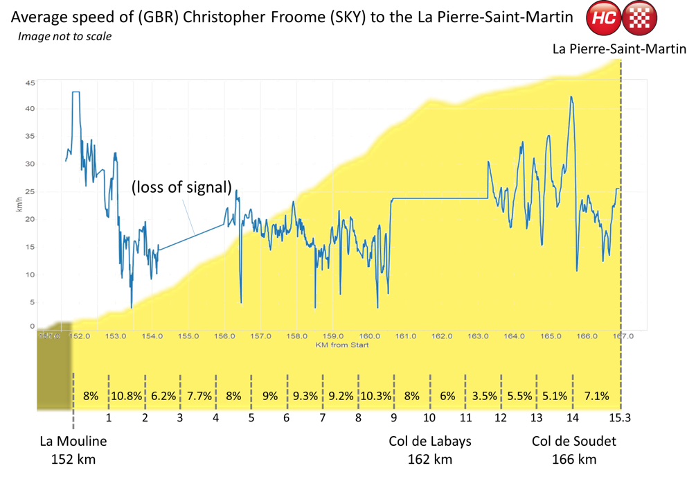 twitter:ammattipyoraily twitterde op dinsdag 14-07-2015 om 17:07:06#TDF2015, Stage 10. La Pierre Saint Martin (14.89 km, 7.72 %, 1150 m)Chris Froome: 40 min 54 sec, 21.84 Kph, VAM 1687 m/h, 6.09 W/kg [DrF] reageer retweet