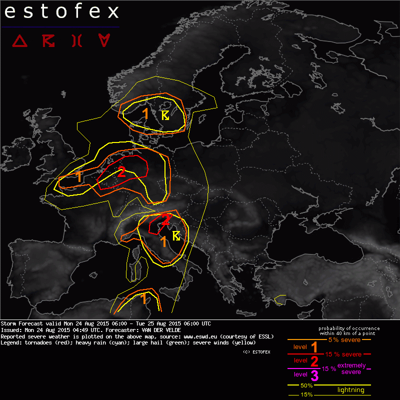 Ik heb zelden berichten van Estofex bij een level 2 gezien waar niet over de mogelijkheid van tornado's gesproken wordtquote:Op maandag 24 augustus 2015 07:23 schreef Ajaxfan het volgende: