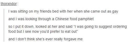 Praat niet over lekker eten als je zo vies eten zegt.