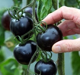 Zwarte tomaten?! Dat lijkt me er zo onuitnodigend uit zien. | |