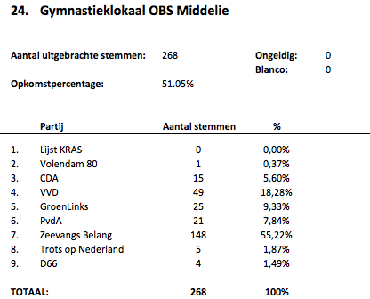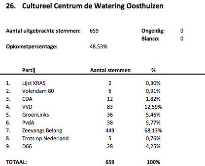 Ja, het blijft curieus, dat lijst 1 en 2 nauwelijks stemmen behalen. Het zijn de 2 Volendammer partijen. Lijst Kras heeft 1 kandidaat uit Oosthuizen, de andere 34 komen uit Volendam. Dat is een stuk diverser dan Volendam '80, waar 36/36 kandidaten uit Volendam komen..
