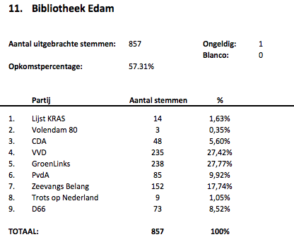 Maar wel leuk om dit te volgen. volgend jaar zijn wij aan de beurt met de herindelingsverkiezingen in Meierijstad. (met hopelijk een beter resultaat voor D66 dan in Edam-Volendam)