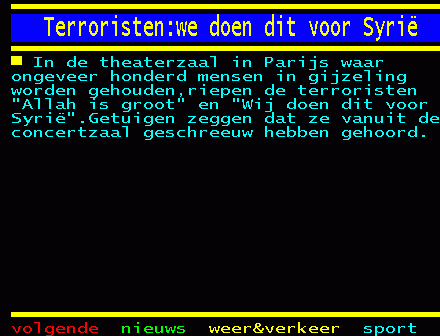twitter:L0gg0l twitterde op zaterdag 14-11-2015 om 00:23:56Unconfirmed reports that news blackout ordered for French TV reageer retweet