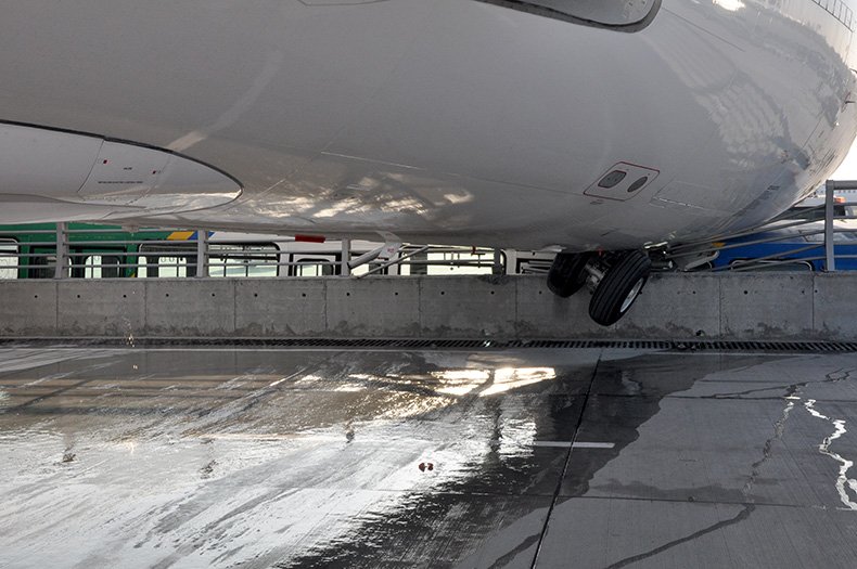 Het toestel raakte ook een bus die aan andere kant van de muur geparkeerd stond of langsreed, meldt Aviation Safety Network. Niemand raakte gewond.