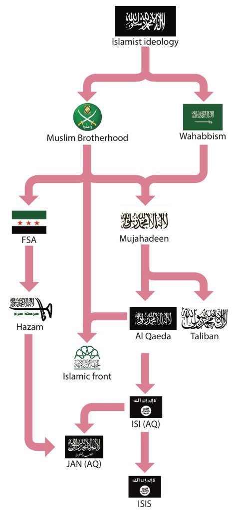IS(IS) - wahabitische terreurorganisatie dat zowel in Irak als in Syri opereert. Iedereen die niet soennitisch wordt onthoofd door deze groepering. In februari 2014 verbrak Al-Qaeda de banden met IS. IS heeft aan zowel de regering, de Koerden als de andere rebellen groepen de oorlog verklaart.