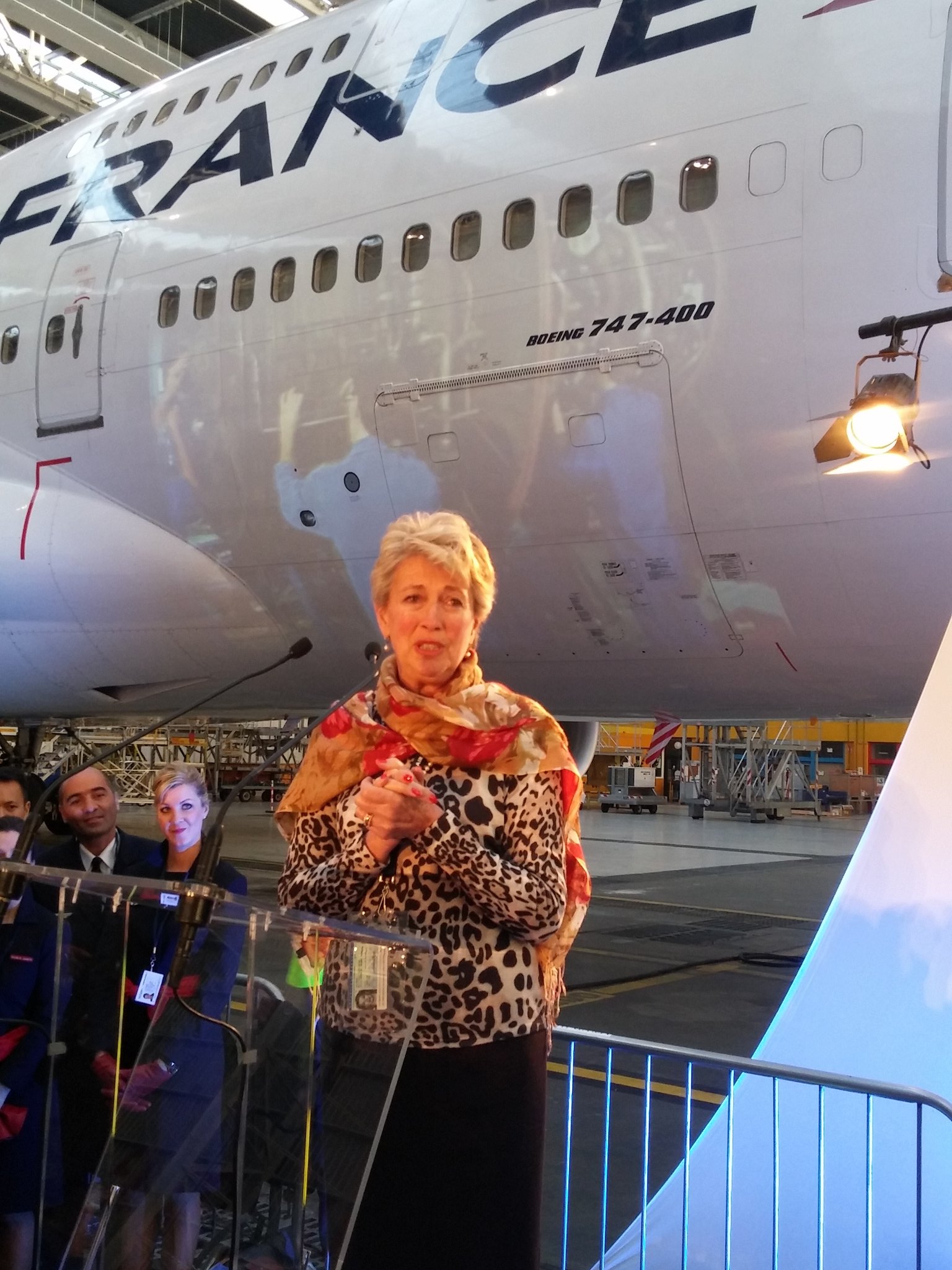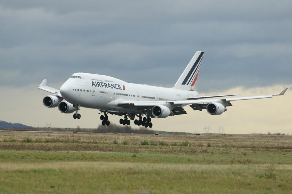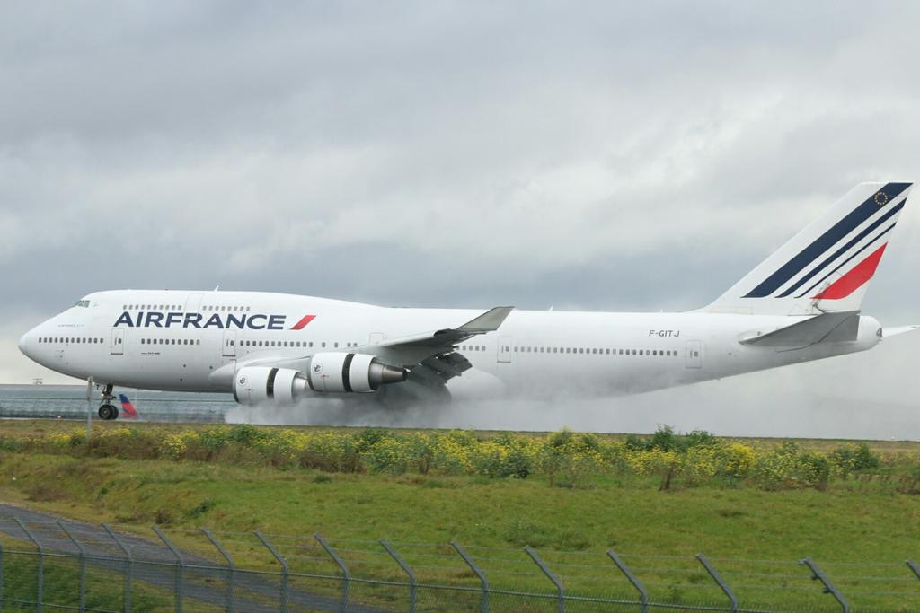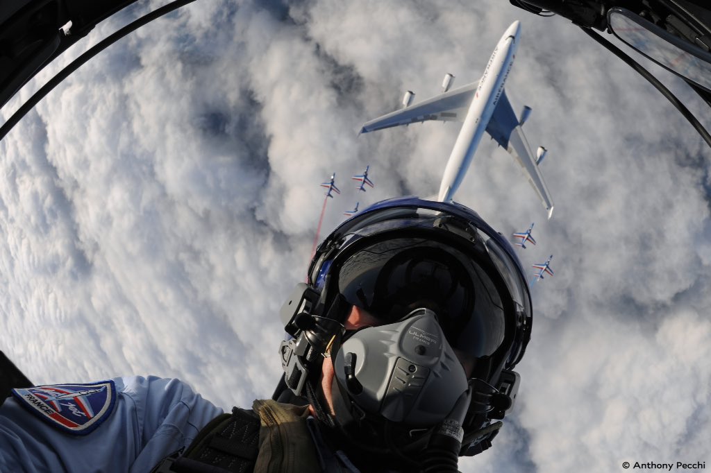 Boeing 747 Air France vliegt in formatie met Patrouille de France