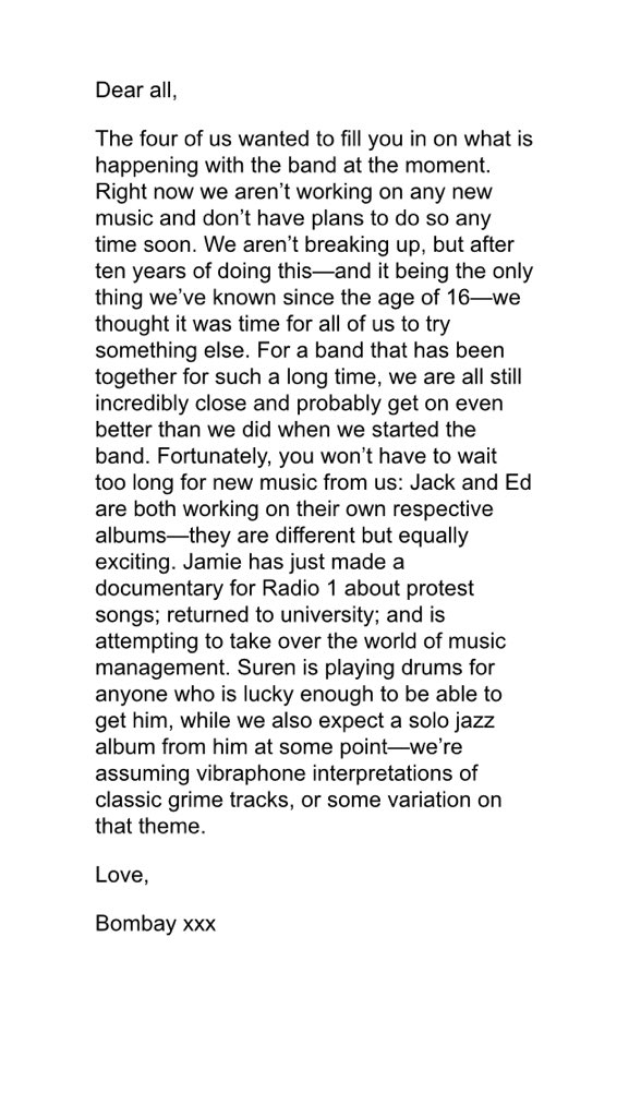 Bombay Bicycle Club vind het wel even mooi geweest.