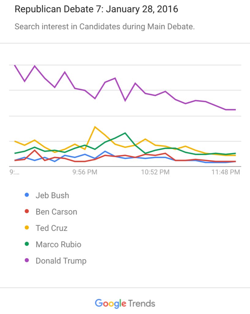 Vooral de de korte clips van kandidaten in het verleden, met andere standpunten, was erg nadelig voor Trump geweest.quote:Op vrijdag 29 januari 2016 11:00 schreef Monolith het volgende:
