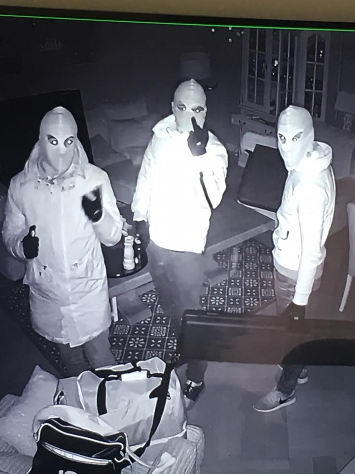 De drie mannen dragen bivakmutsen, capuchons en handschoenen, maar Immers is blij met de herkenbaarheid van de inbrekers: ,,Ze staan er lekker op. En de auto van deze eikels is ook te zien.''