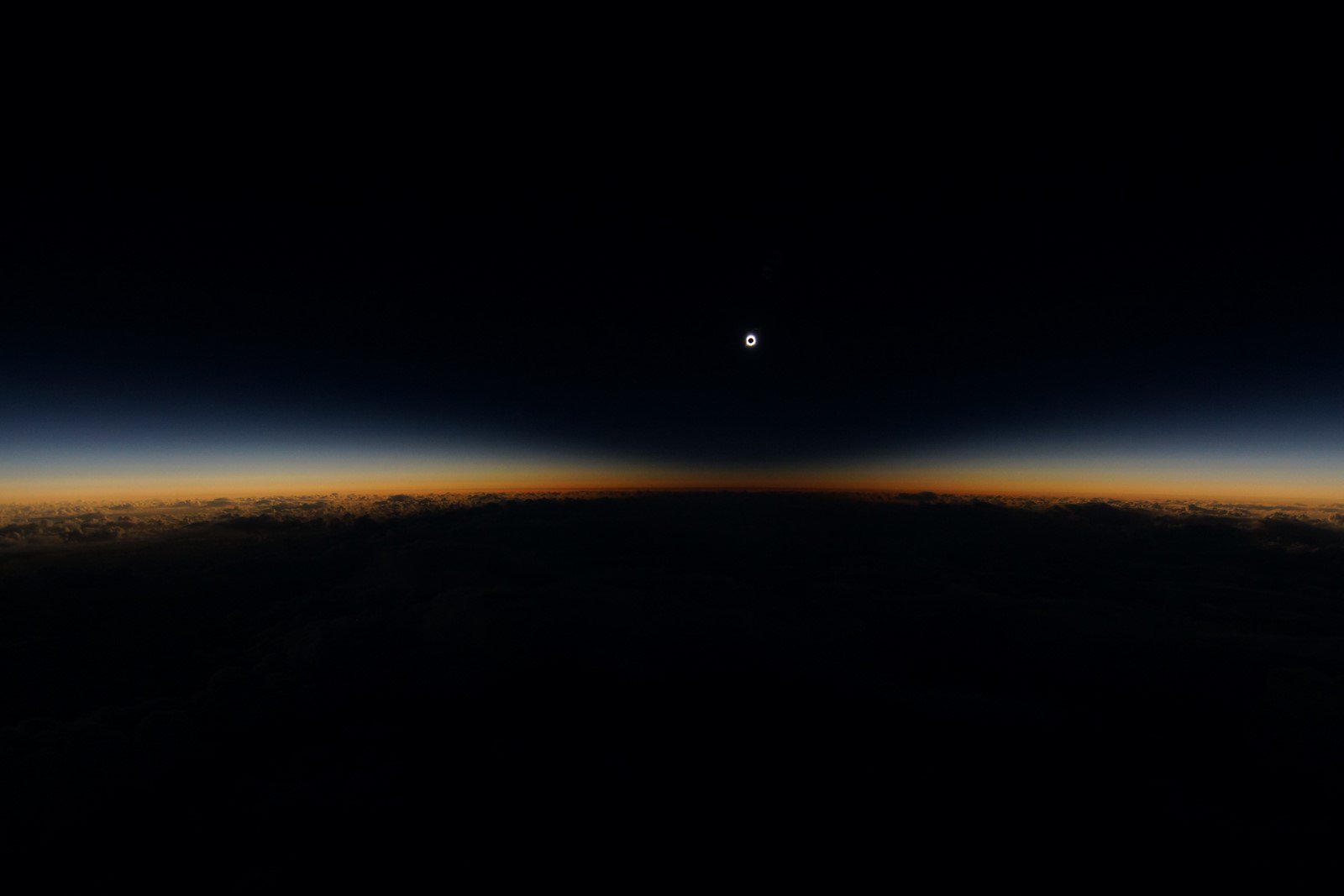 Dan moet je wel de goede kant op vliegen, ik zie alleen maar wolken en water