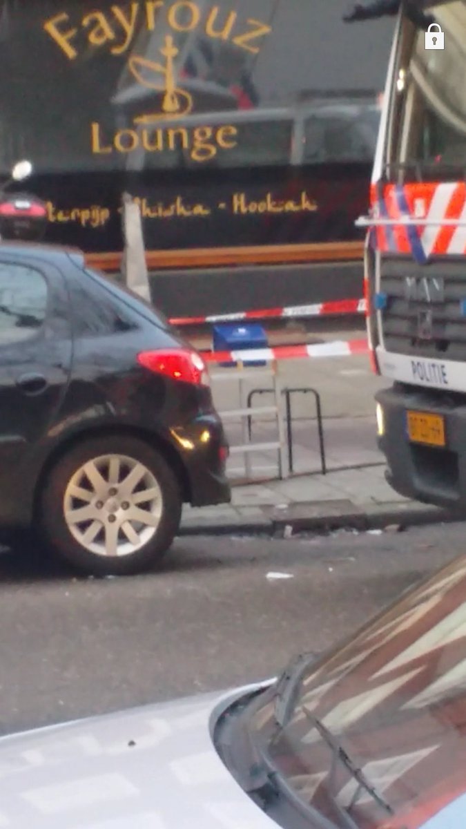 Het werd gevonden op de Amstelveenseweg bij shisha-lounge Fayrouz, een bar waar waterpijpen kunnen worden gerookt. De lounge staat bekend als ontmoetingsplek voor criminelen die betrokken zijn bij de drugsoorlog in Amsterdam. De politie is druk bezig met het onderzoek.