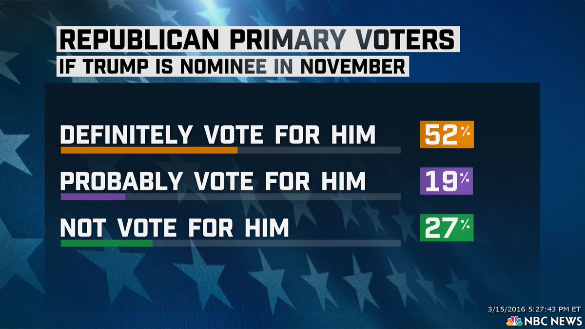 Uit de exit polls zou ook blijken daar grofweg 30-50% in de verschillende staten serieus zou overwegen om op een dergelijke kandidaat te stemmen als Trump de Republikeinse kandidatuur wint.