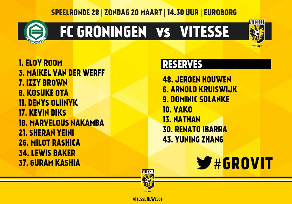 Rochet; Luckassen, Vlaar, S. Wuytens, Haps; Haye, Van Overeem, Rienstra; Jahanbakhsh, Janssen, Garcia