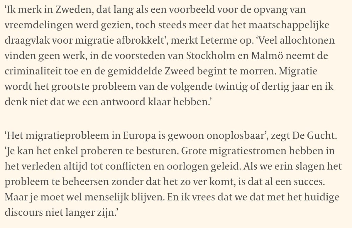 Dat plaatje gaat over oorlogsdoden. Verder spreekt het over terrorisme enndan vooral in nederland (theo van gogh) en de zogenaamde angst van nederlanders. Dat ze moeten kalmeren , en achterkomen waarom de nederlanders zo bang zijn Niemand spreekt hier over angst Ik heb het over steden in europa die aan het veranderen zijn De wetteloosheid die heerst in wijken die ooit juist prachtig waren Denk aan riots in 2005 in frankrijk en in belgie. Hoe snel de vlam in de pan kan gaan Zoiets zag je alleen in yugoslavie ofzo Wijken waarvan 95% bestaat uit migranten. Waar je ekkaar niet eens in de ogen kan kijken. Waar rivaliserende bendes (bestaande uit migranten) elkaar afmaken. Wat ook al begint in amsterdam Waar de imaam grote zorg heeft in mocro mafia. Waar elke maand wel een jonge nederlander van marokkaanse afkomst geliqudeerd wordt Dat op zo n jonge leeftijd al zware criminele dingen flikken Dat ie aan de noodbel trok Ik heb het over sharia wijken. Waar je geen kans hebt om aan de criminaliteit te ontsnappen Waar de politie niet meer komt (ja we zijn nog steeds in europa) Denk aan wijk rosengaard in de stad malmeo Zweden de verkrachtingshoofdstad van de wereld. Waar verkrachtingen met 500% is toegenomen Met meer wijken met broedplaatsen voor jihadisten. Denk aan molenbeek oa Of londen. De stad waar aannde ene kant mooie hotles te zien is. Waar je lekker kunt shoppen. Ook de toerist kunt uithangen Maar even verderop het station vol zit met oost europeanen en migranten uit andere delen van de wereld Die bedelen. Wijkem die ook onbereikbaar worden Vertel je mij nu serieus dat het momenteel beter met europa gaat dan afgelopen 30 jaar Dan raad ik je aan om je stad of dorp te verlaten en een kijkje te nemen | |