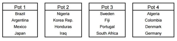 GRUPO A: Brasil, Sudáfrica, Irak, Dimanarca