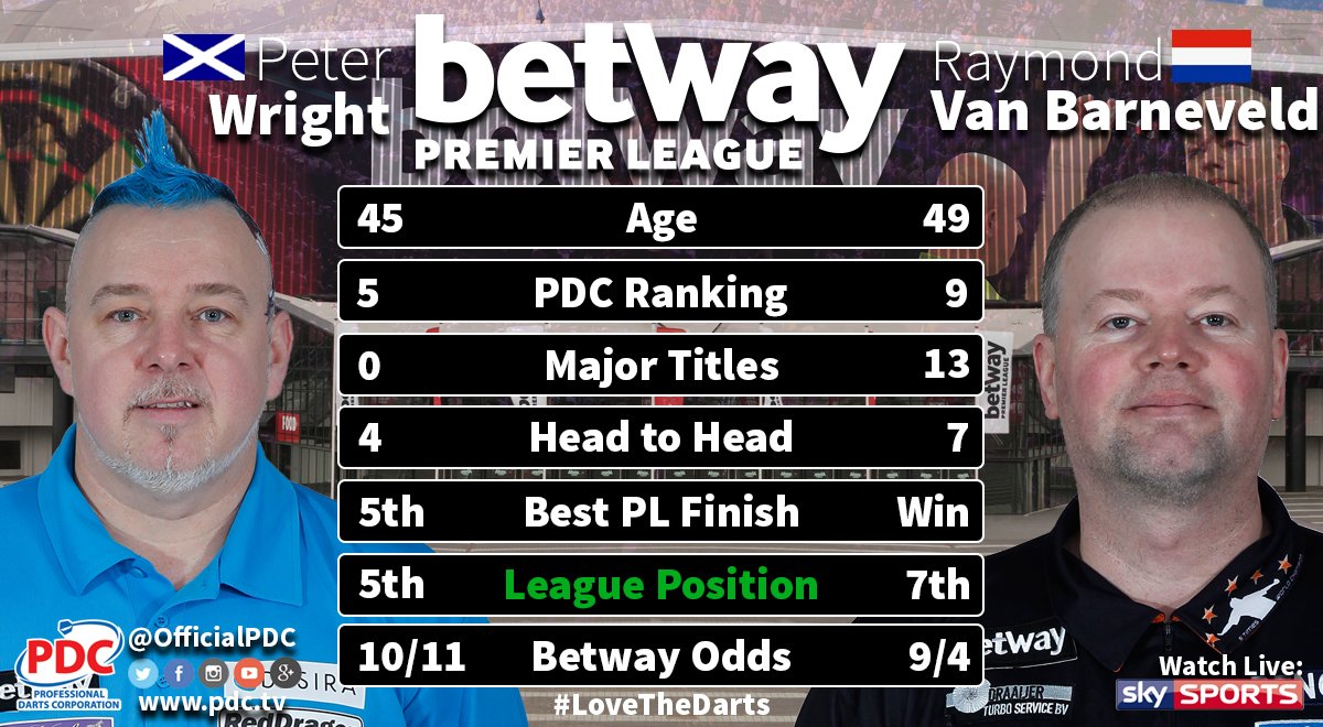 alleen als hij wint, gelijkspeelt of met minder dan 5 legs verschil verliest geloof ikquote: