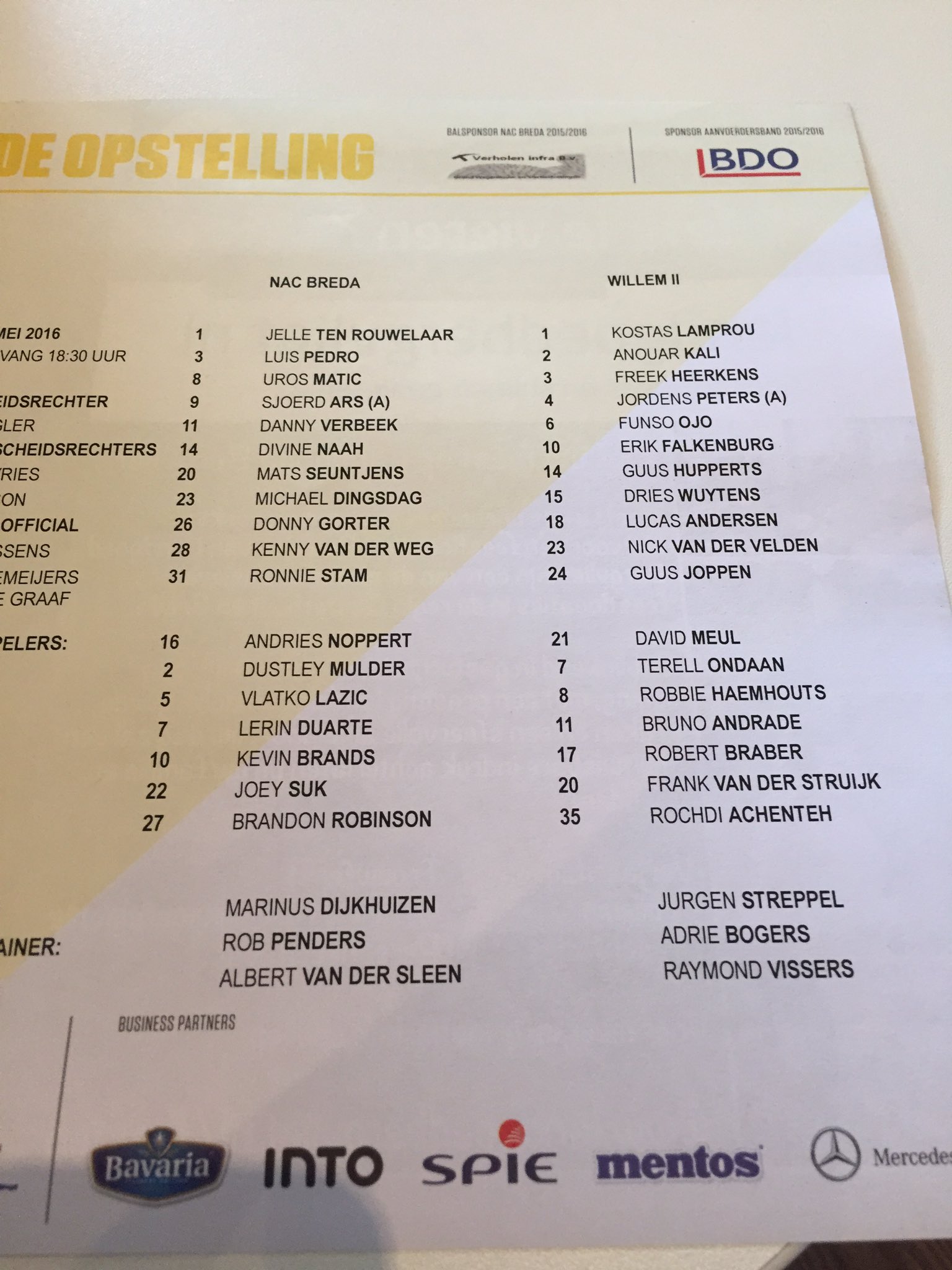 ik moet 16:45 willem II - nac missen