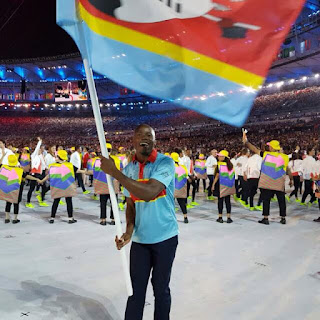 'Swazi Bolt' proudly raises the Swazi Flag during the Olympics official opening ceremony.