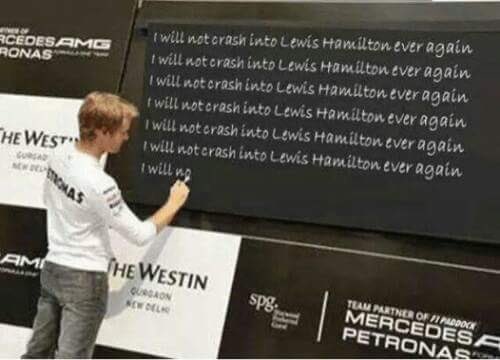 Dat was een rare en zeer controversiele beslissing in een heel andere situatie. Terwijl er voorbeelden te over zijn van bijna dezelfde situaties met Rosberg aan de buitenkant en Hamilton aan de binnenkant, met en zonder contact. Verschil is dat Rosberg dan niet instuurt en zo dus de collision avoid, terwijl Hamilton hier de dus avoidable collision veroorzaakt door gewoon in te sturen alsof Rosberg de lijn over de apex had gekozen.