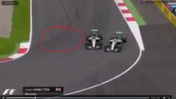 Kon Hamilton wel zien of Rosberg instuurde? Ze hebben een beste dode hoek en hij nam een hele wijde lijn.