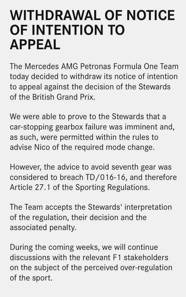 Geen protest van Mercedes tegen straf Rosberg https://www.mercedesamgf1(...)intention-to-appeal/
