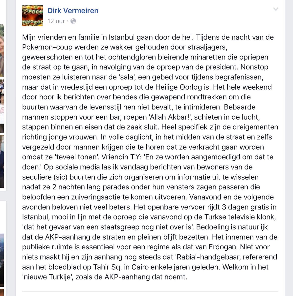 Dat niet, maar ik vind het eng voor de normale, seculiere en vrije Turken die daar leven. Om geconfronteerd te worden met dat je vrijheden worden afgenomen en je in een dictatuur gestort wordt.quote:Op maandag 18 juli 2016 13:44 schreef Onnoman het volgende: