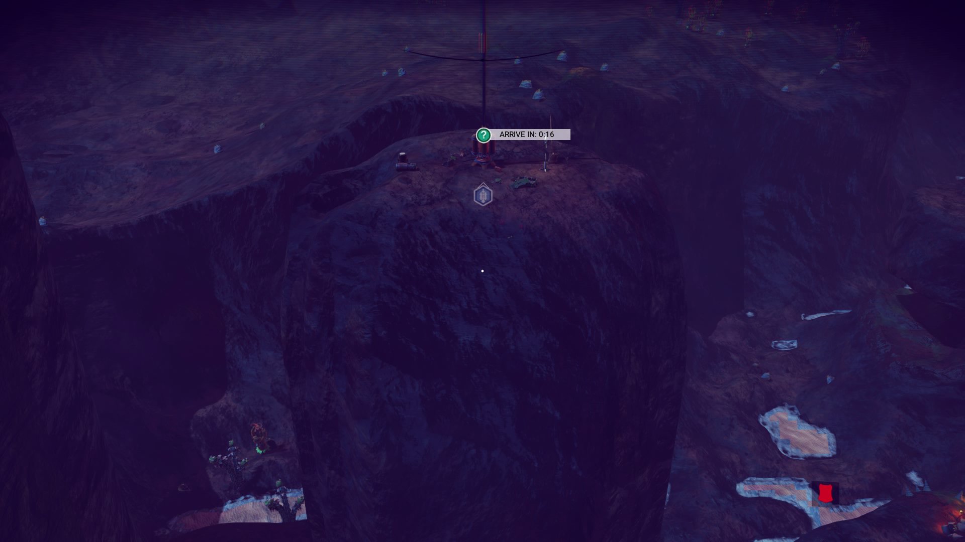 Check dit dan. Is dit de bedoeling? Volgens mij moet ik naar een beacon toe maar die staat op een rotsje van zo'n 100 meter hoog. Ik ga het zo met het jetpack proberen maar volgens mij ben ik fucked.