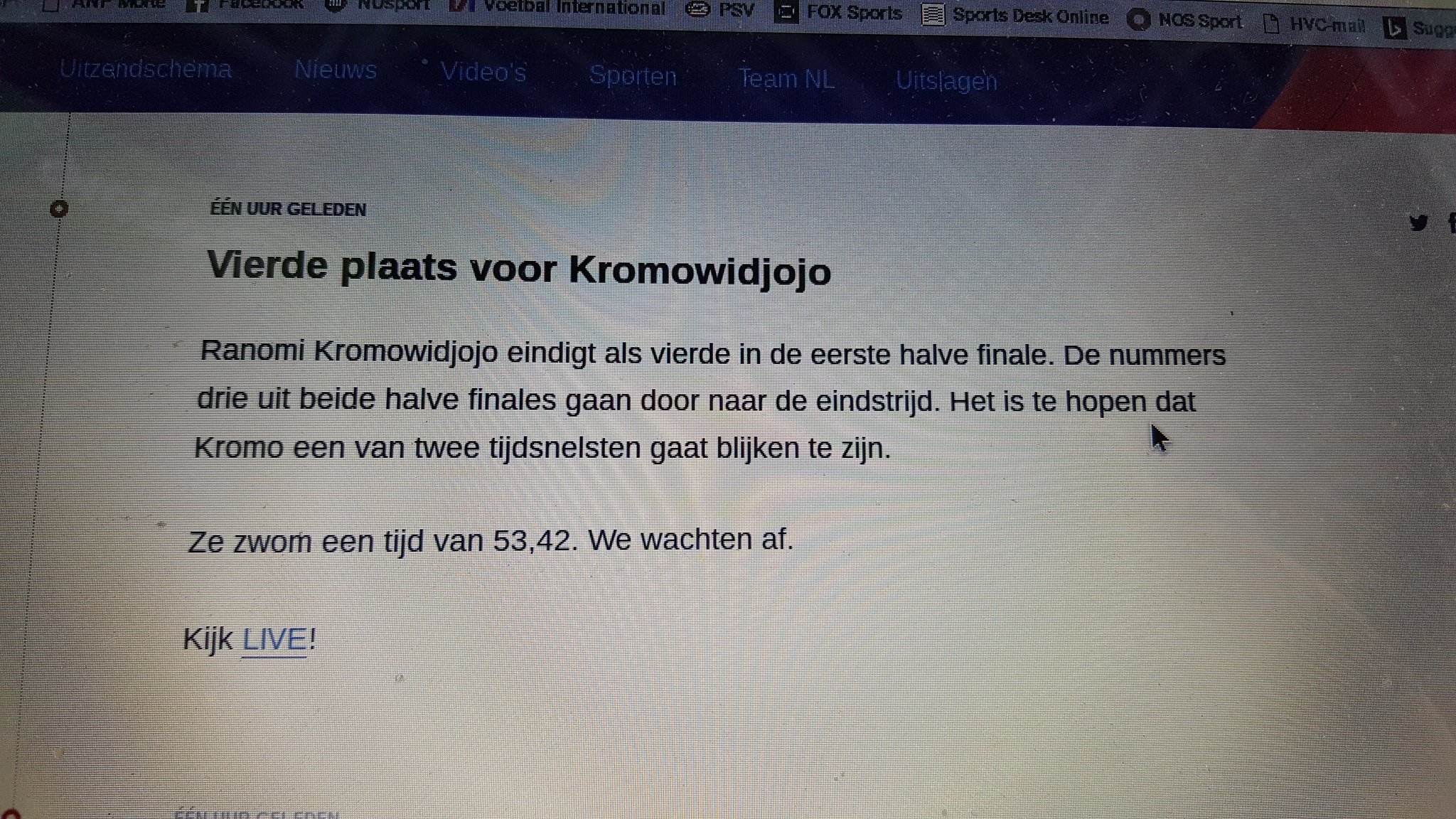 Dat is pas bij Dafne, maar met 53.42 gaat ze de finale niet halen gok ikquote: