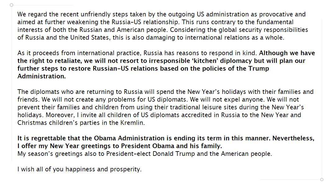 Ik volg de spywar tussen de VS en RU al sinds een paar jaar via de feed van 20committee (John Schindler) en werkelijk al zijn voorspellingen zijn uitgekomen en al zijn editorals in The Observer waren right on the money.quote:Op zaterdag 31 december 2016 00:16 schreef MangoTree het volgende: