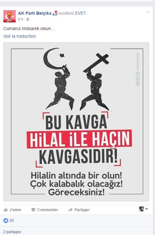 [ afbeelding ]twitter:ZilteBotte twitterde op vrijdag 10-03-2017 om 19:00:20Belgische afdeling partij Erdogan : "dit is strijd tussen kruis en halve maan"Islamitische aap uit de mouwRT https://t.co/7Oeqq217yt reageer retweet