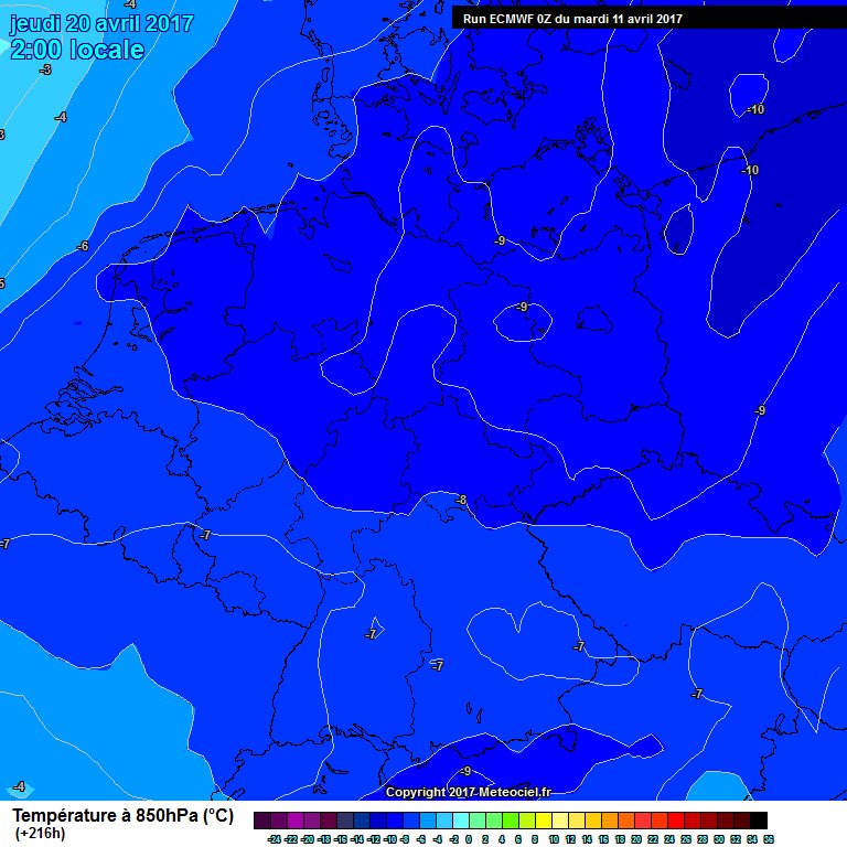 ![]() Wednesday next week, Apr 19th - around 7-12°C colder than average 2m temperature across east-central Europe ![]() | |