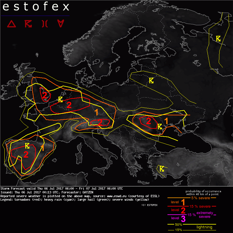 De jongens van Estofex zitten nog aan de bbq, nog steeds geen nieuwe kaart.