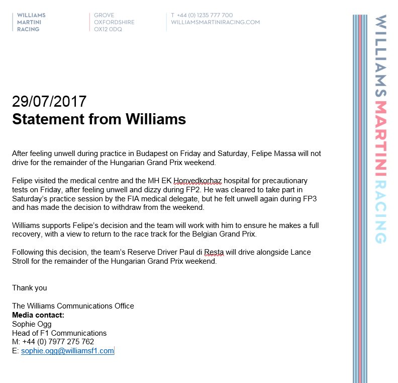 twitter:NataliePinkham twitterde op zaterdag 29-07-2017 om 13:05:03The doc says @MassaFelipe19 has the same thing that affected @MBrundleF1 - Viral labyrinthitis. Now 10 cases of it reported in the paddock 😷 reageer retweet