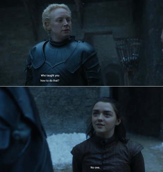 hopelijk binnenkort ook een sparretje tussen Arya en Jon zoals iemand al noemdeVond deze al vet