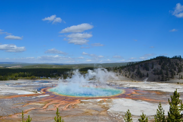 Yellowstone is echt groot. toen ik daar een maand geleden was deden wij over alleen het het stukje Upper geyser basin ( Old Faithfull, morning glory pool) en de grand prismatic pool al een volle dag.