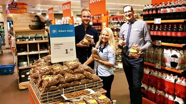 Ik zie het wel eens bij de Jumbo en de AH. Zelf nooit gekocht
