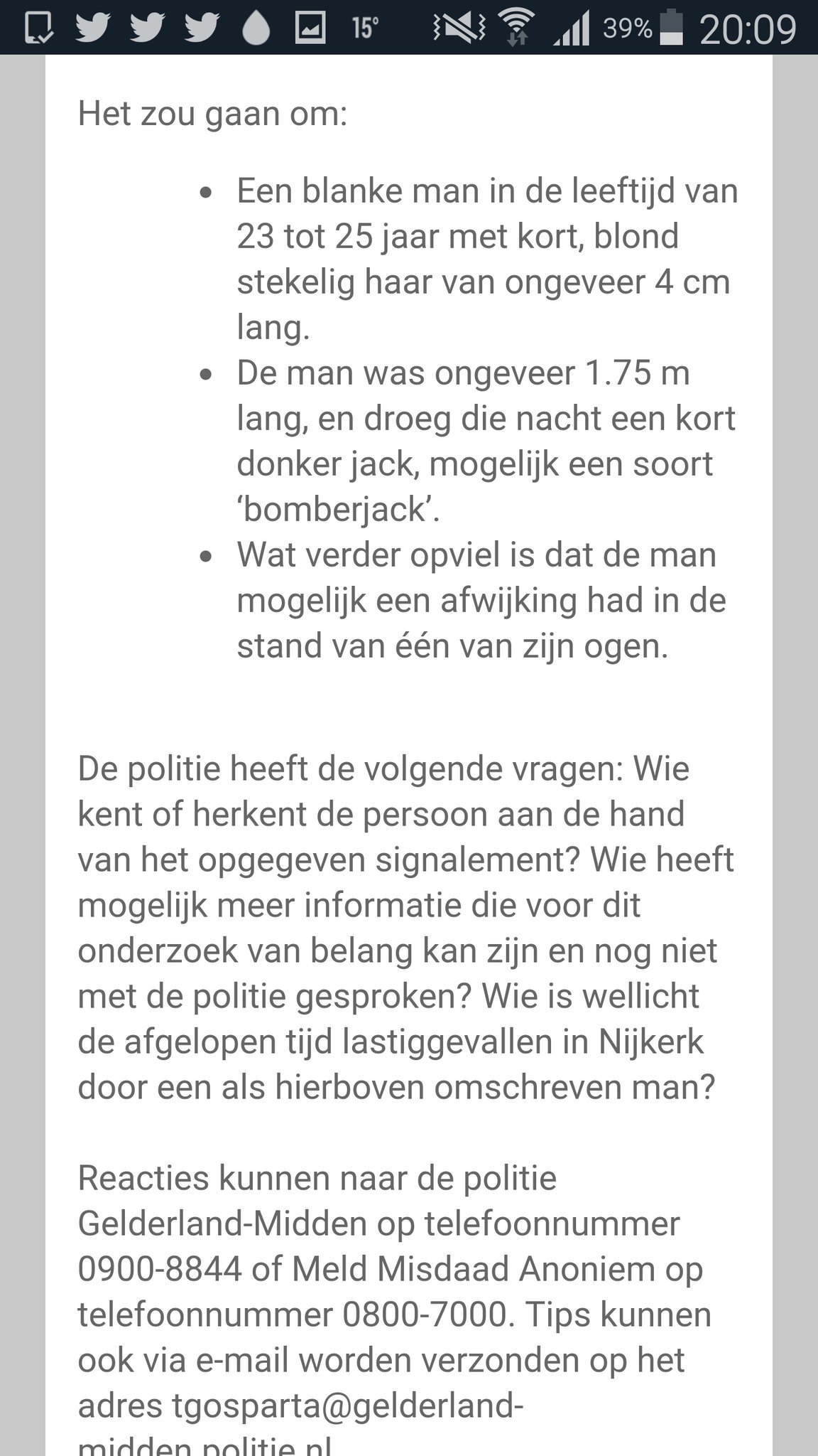 - De politie heeft inmiddels 1700 tips ontvangen, teveel nog om allemaal persoonlijk te beantwoorden.